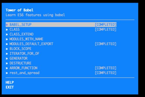 さて、NodeSchool が開校された時に、ES6を学べるチュートリアル的なものがほしいと思い、tower-of-babelという名前のチュートリアルツールを作成しました。yosuke-furukawa/tower-of-babelgithub.com このツールはnpm/node.jsを使って作っています。実際に…
